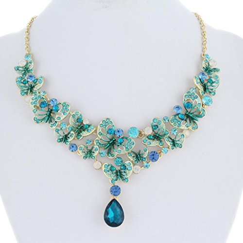 EVER FAITH Collana di Cristallo Farfalla lacrima Blu Austriaco Orecchini Set Gold-Tone N03624-4