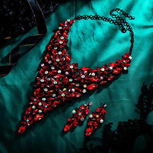 EVER FAITH Collana e Orecchini da Donna, Cristallo Austriaco Abiti Statement Fiore Grappolo Girocollo Parure Gioielli Rosso