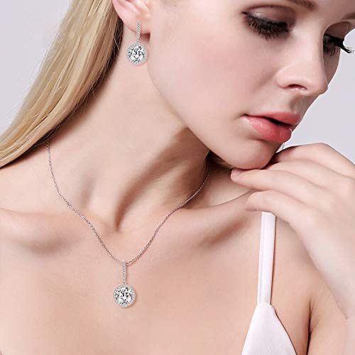 EVER FAITH-Collana del Pendente Argento 925 CZ Splendido taglio rotondo di nozze orecchini set trasparente