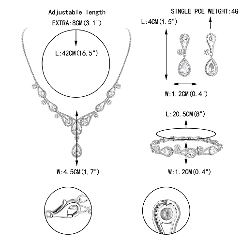 EVER FAITH Donna Zircone Sposa Y Forma Fiore Goccia Collana Orecchini Braccialetto Set Trasparente Argento-Fondo
