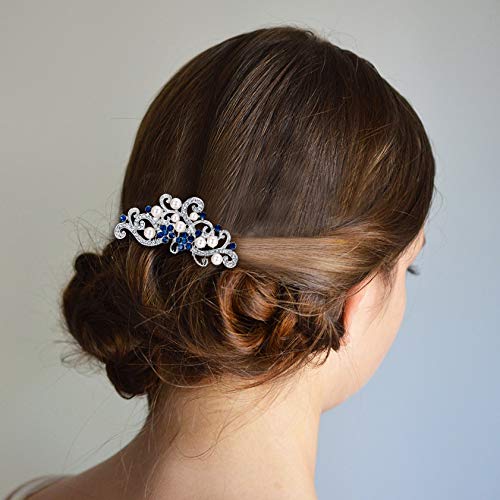 EVER FAITH Gioielli per Capelli, Austriaco Cristallo Crema Perla simulata Floreale Vite Matrimonio Pettine per Capelli Blu Argento-Fondo
