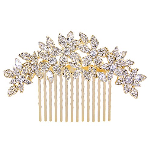 EVER FAITH Gioielli per Capelli, Cristallo Austriaco Sposa Elegante Fiore Grappolo Pettine Trasparente Oro-Fondo