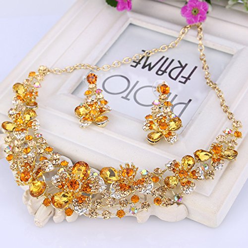 EVER FAITH Set Gioielli Donna, Austriaco Cristallo Elegante Sposa Primavera Fiore Collana Orecchini Set Marrone Oro-Fondo