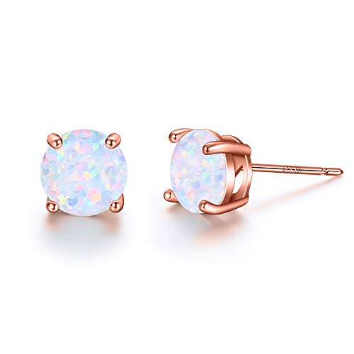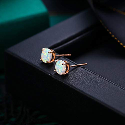EVER FAITH Opale creato Perno orecchini a lobo 6mm, 925 Argento, Pietra preziosa Opale Rotonda Solitare orecchini a lobos Rosa Oro-fondo