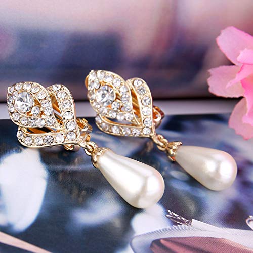 Ever Faith Orecchini Austriaco di cristallo color avorio perla simulata Oro-fondo