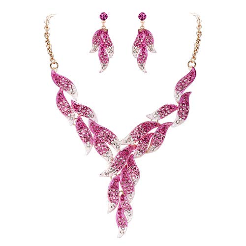 EVER FAITH Parure Gioielli Donna Cristallo Austriaco Matrimonio Sposa Florale Foglia Vite Collana Orecchini Set Rosa Oro-Fondo