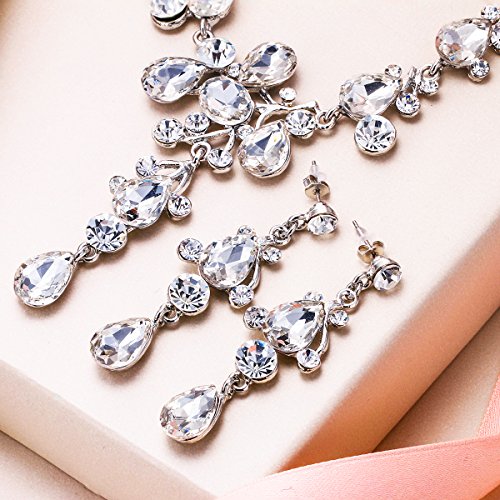 EVER FAITH Parure Gioielli Donna Cristallo Matrimonio Floreale a Goccia Filigrana Set Orecchini e Collana Trasparente Argento-Fondo