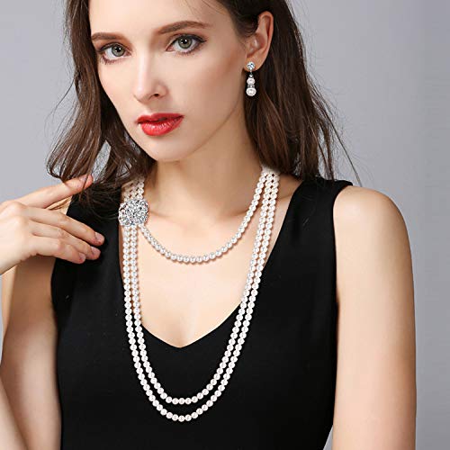 EVER FAITH Parure Gioielli Donna Cristallo Perla simulata Nuziale 3 Strati Floreale Lungo Catena Collana Orecchini Set