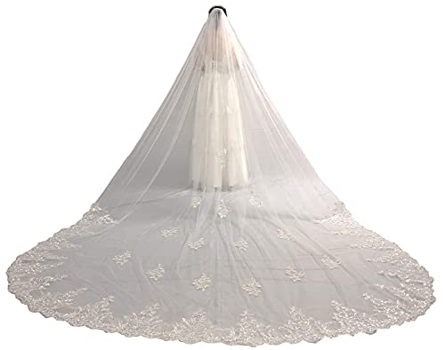 Veli lunghi da sposa realizzati a mano con bordo in pizzo a 1 livello Cappella della cattedrale lungo treno con pettine.