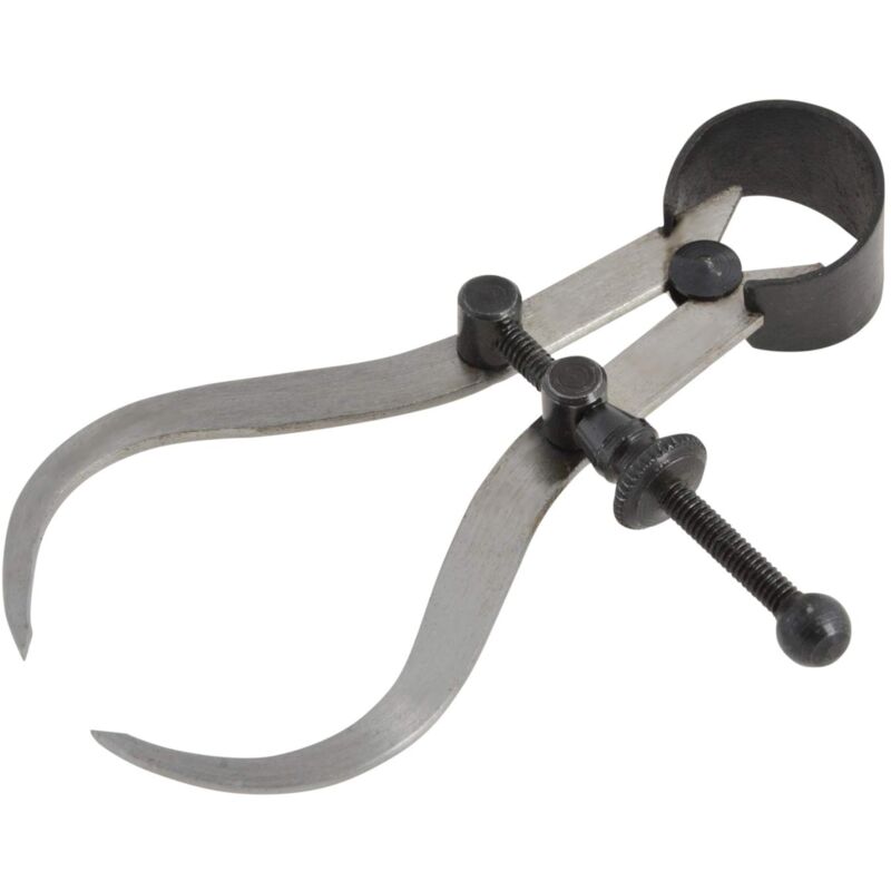 Descrizione Manufactured from high quality carbon steel with a polished finish. The legs are made from carefully selected flat stock with heat treated points for durability, and they pivot on a roller while the bow spring ensures a precise tension setting. Accurate adjustments are made by turning the knurled nut on the threaded rod. The design of these calipers, with their fine adjustment feature, ensures quick and positive settings when taking or transferring specific measurements. Description: Outside Spring Caliper Size: 100mm (4in)