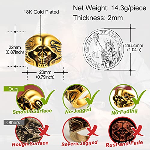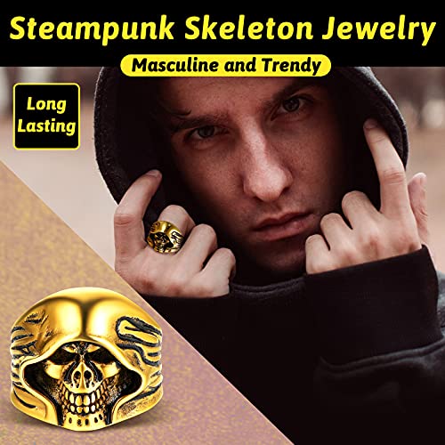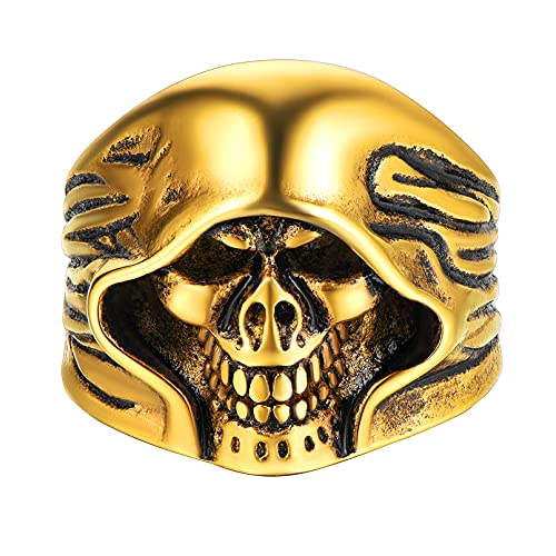FaithHeart Anello Uomo Teschio Cranio del Mantello Argento Nero Oro Misura 14-32 Punk Gotico Anello Halloween tribù Misteriosa Anello Antico Punk Hip-Hop Rock Biker Regalo Creativo