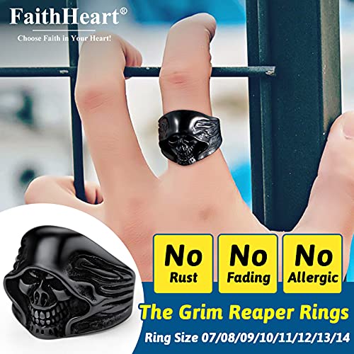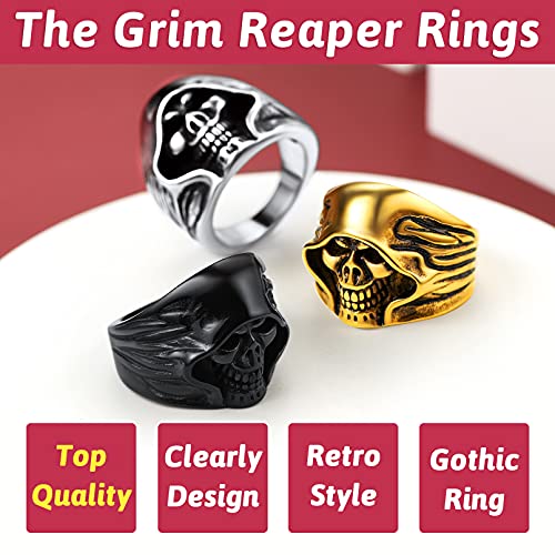 FaithHeart Anello Uomo Teschio Cranio del Mantello Argento Nero Oro Misura 14-32 Punk Gotico Anello Halloween tribù Misteriosa Anello Antico Punk Hip-Hop Rock Biker Regalo Creativo