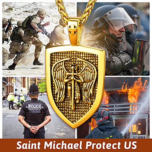 FaithHeart San Michele Santo Medaglia Collana San Micheal in Acciaio Inossidabile/Oro Placcato/Nero con Catena 55+5 cm Gioielli Religiosi Amuleto per Uomo Donna (Confezione Regalo)