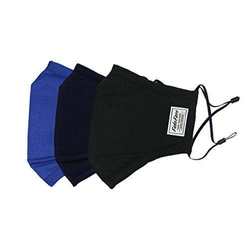 FakeFace Set da uomo a 3 pz. Cotone Paradenti con carbone attivo Maschera viso Maschera bocca Protezione contro polveri sottili Germi Fumo passivo Polline Dunkelblau+Schwarz+Blau