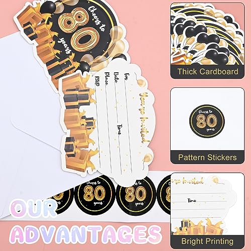 Falafoty Invito Festa di Compleanno 80 con Buste e Adesivi 15PCS Oro Nero Inviti di Compleanno Adulti Forniture per Decorazione dI Festa di Compleanno per Uomini Donne Creativo Invito di Compleanno