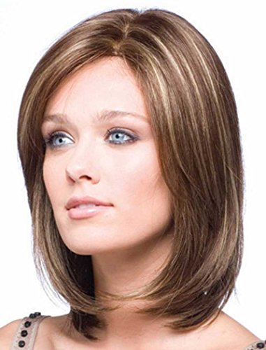 Falamka elegante colore misto Marrone medio lunghezza capelli naturali dritto corto donne parrucca a caschetto