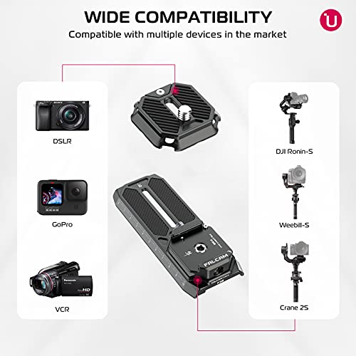 Ampia compatibilità: FALCAM F38 Quick Release Plate è adatto solo per DJI RS2/RSC2, 1/4 di filettatura sulla piastra superiore si adatta a qualsiasi fotocamera come Sony ZV-1, SLR, supporti per telefoni cellulari, adattatori Gopro, ecc.