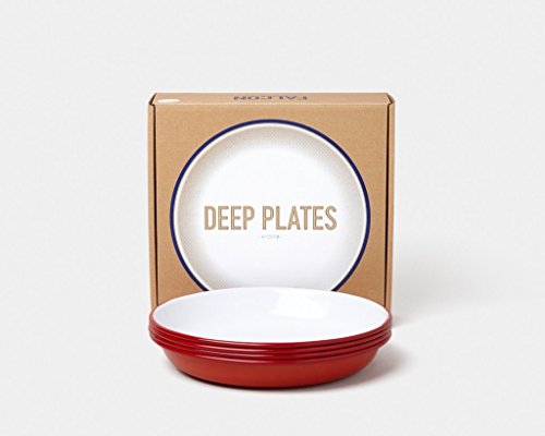 Set di 4 piatti fondi smaltati, colore rosso