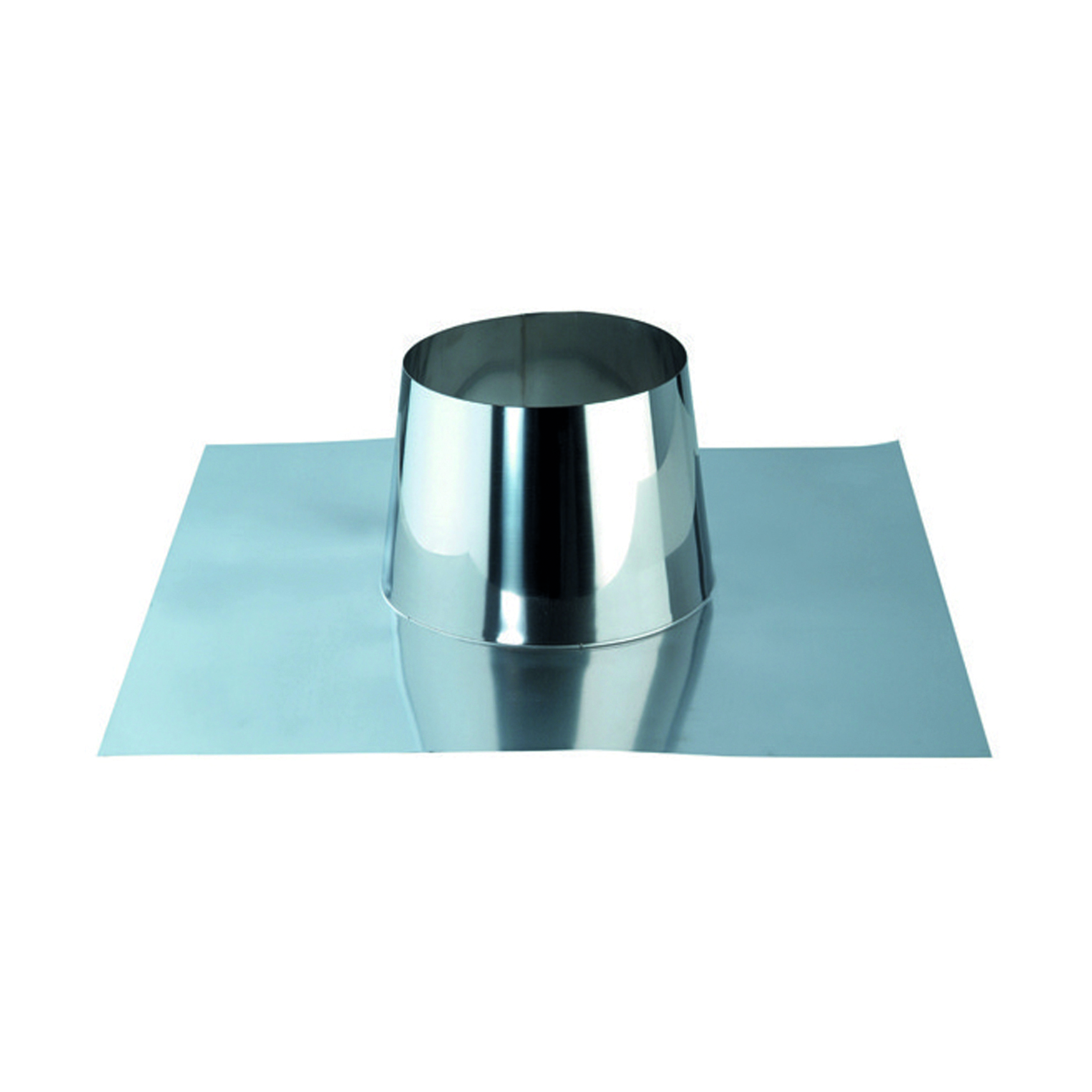 Faldale inox piano per doppia parete Dn 130/180 mm. Utilizzato sulla falda del tetto piano sotto le tegole. da utilizzare con apposita fasetta anti-intemperie. Si adegua perfettamente all'andamento del tetto coprendo il foro, garantendo una superficie di appoggio per le tegole corretta.