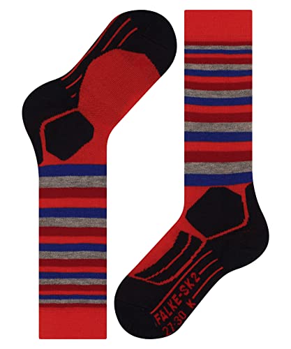 FALKE SK2 Intermediate Stripes K KH lana caldi spessi 1 paio, Calzini da sci Unisex - Bambini, Arancione (Samba Orange 8182), 23-26