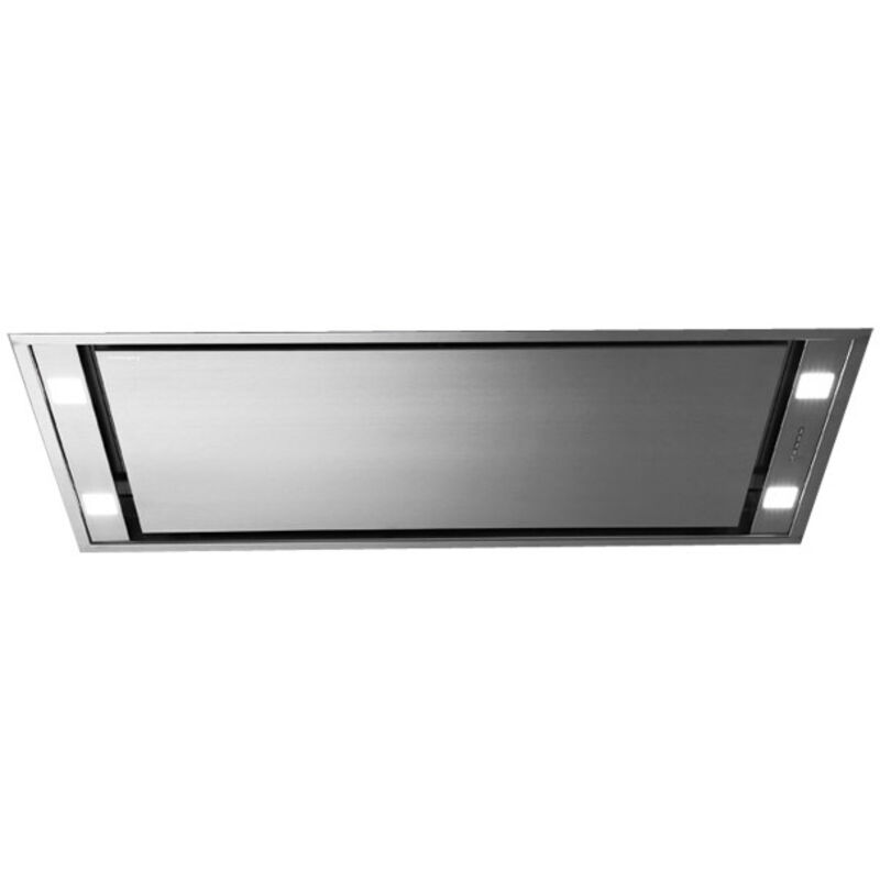 Cappa a soffitto senza motore Stella 90 Falmec CORSTEL3431. Si prega di notare che questa plafoniera viene venduta senza motore. È inoltre necessario ordinare il pacchetto motore desiderato a seconda della sua installazione (motore sul corpo, motore remoto in soffitta o motore esterno). Comandi elettronici retroilluminati. Aspirazione perimetrale con pannello antirumore di nuova generazione. Filtri antigrasso metallici lavabili in lavastoviglie. In modalità riciclaggio, è necessario installare un kit di riciclaggio (riciclaggio orizzontale: riferimento KACL939 composto da un filtro a carboni attivi (riferimento KACL928 per la sostituzione) e un sistema di sospensione/riciclaggio verticale: riferimento RECYPLAFV composto da un filtro a carboni attivi (riferimento FILTREDOWND per la sostituzione) e un sistema di sospensione. Luce LED dinamica: illuminazione a LED con temperatura variabile (da 2700K a 5600K). Tipo di prodotto: Cappa da soffitto. Gamma: Stella 90. Modalità operativa
