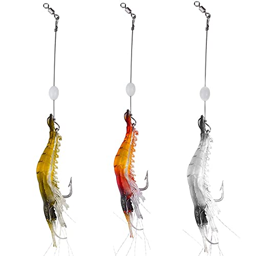 3 Pcs Falso Gancio per Esche per Gamberetti,Set di Esche per Gamberetti con Ganci Artificiali per Gamberetti con Ganci Attrezzatura Set di Esche Mmorbide in Silicone,per Pesca Mosca Pesce (A Caso)