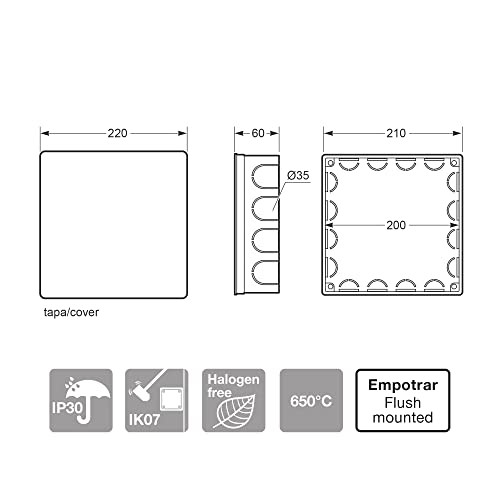 FAMATEL 3204-Scatola da incasso, 200 x 200 x 60/c clip