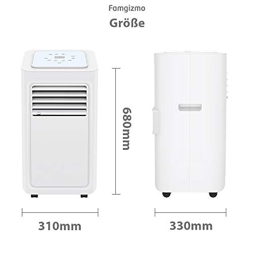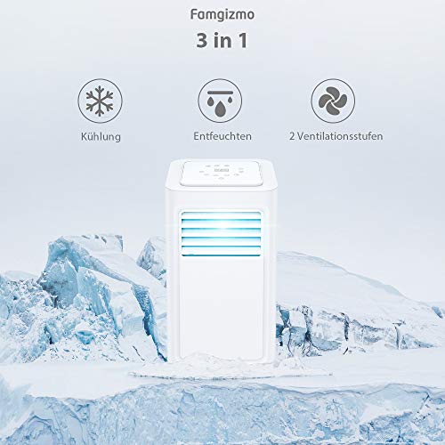 Famgizmo Climatizzatore portatile con telecomando e timer portatile silenzioso 3 in 1, raffreddamento, ventilazione e deumidificazione, 5000 BTU, Eco R290