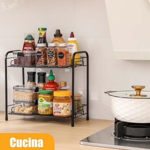 【Installazione Senza Foratura】 Questo portaspezie appoggioa due livelli non richiede foratura o avvitamento, può essere installato rapidamente e facilmente in pochi minuti, adatto per l'ufficio, il bagno, il piano di lavoro della cucina e il tavolo da pranzo.