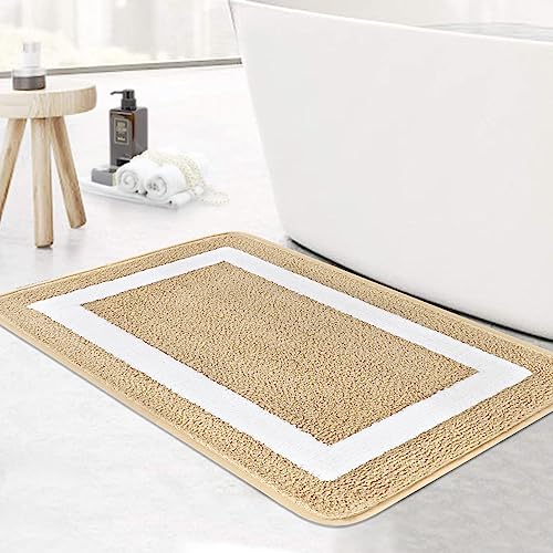 Famibay Microfibra Tappeto Bagno Beige 45x65cm Tappetini per il Bagno Assorbente Tappeti da Bagno Antiscivolo Tappetino da Doccia Lavabile in Lavatrice per Bagno Vasca Soggiorno Camera da Letto Cucina