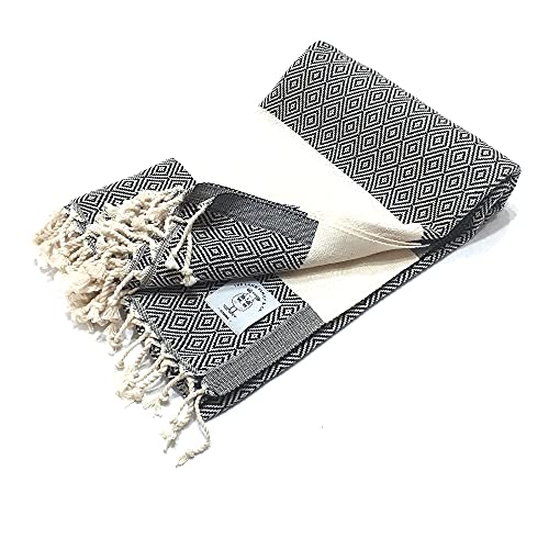 The Lamb Family & Co Diamond Premium Telo asciugamano turco, multiuso in cotone 100% Molto morbido, incredibilmente assorbente e leggero, telo asciugamano Peshtemal, per la casa e in viaggio (100 x 180 cm) (nero, 4)