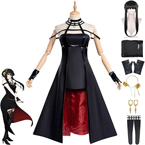 Spy Family Yor Forger Costume Cosplay Outfit Set completo Abito nero Uniform Suit Halloween Party Anime Kimono Dress Up con parrucca per donne ragazze