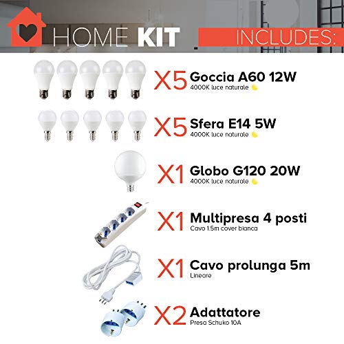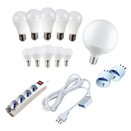 DYA KIT HOME FAMILY 10 LAMPADINE, 1 GLOBO, 1 MULTIPRESA, 2 ADATTATORE SCHUKO, 1 CAVO PROLUNGA