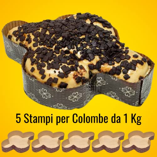 FAH FAMILY AT HOME Stampo per Colomba (5pz - 1 Kg) - Forme/Pirottini per Colomba in Carta di Pura Cellulosa in Microonda Ideale per l'uso in Forno, Monouso ad Alta Densità, Resistente al Calore 200°C