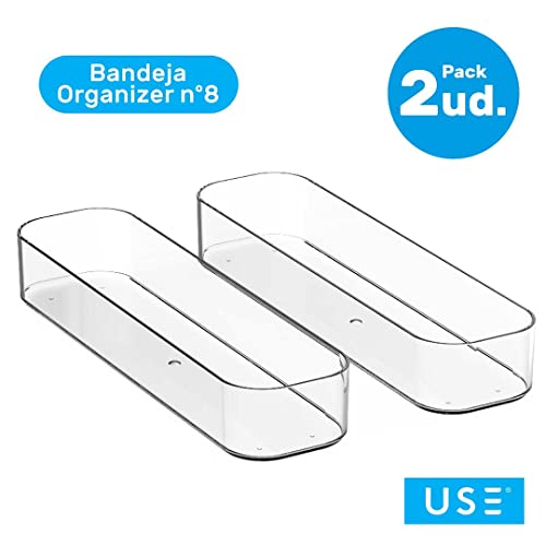 USE FAMILY - Set di 2 vassoi organizer in plastica n. 8 - Vassoi impilabili - Cassetti organizer - Vassoi Organizer - Trasparente e Durevole - Grande capacità