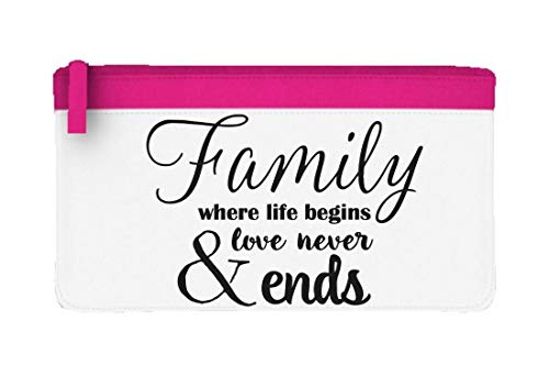 Family where Life Begins and love never ends cute Statement Pencil Case Flat zip Colourful Stationary Holder Misura unica Pink