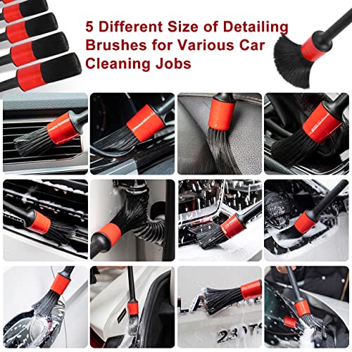 Set di pennelli per la pulizia dell'auto: questo set di spazzole altamente funzionali per dettagli auto è composto da 9 pezzi, composto da 5 spazzole per dettagli auto di diverse dimensioni, 1 spazzola lunga per cerchioni, 1 spazzola versatile per il lavaggio dell'auto, 1 panno per la pulizia e 1 spazzola per lo sfiato dell'auto. È possibile pulire facilmente ogni angolo
