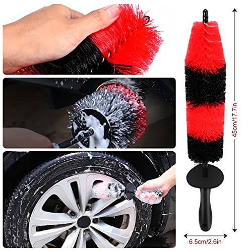 Spazzola professionale per pneumatici: spazzola per la pulizia dei cerchioni con setole morbide e copertura protettiva per evitare graffi. Il detergente per cerchioni rende facile rimuovere grasso, olio e polvere dei freni da raggi, radiatori, tubi di scappamento. La combinazione di spazzole per la pulizia dei cerchioni fa brillare nuovamente le ruote in lega