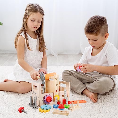 FAMKEEP Cassetta Attrezzi Bambini Legno,29 Pezzi Attrezzi Giocattolo Bambini,Montessori Giocattolo,Legno di 1 2 3 4 5 Anni,Adatto Ragazzi e Ragazze Compleanno Halloween Natale Pasqua Regalo