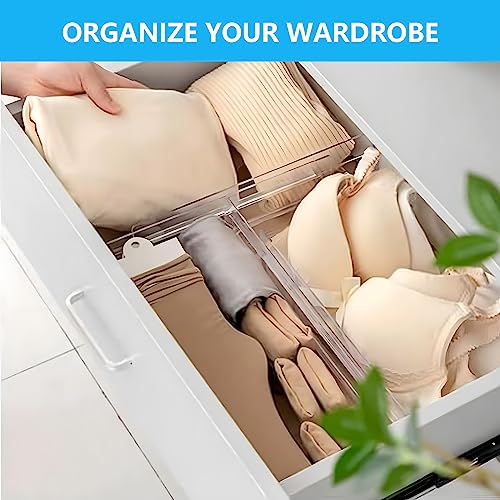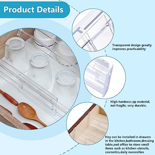 FAMKEEP 8 Pezzi Divisori per Cassetti Regolabili,Cassetti in Plastica Trasparente Separatori,Divisori per Cassetti,Organizer Armadio o Desktop per Bagno,Comò, Cucina o Trucco Conservazione