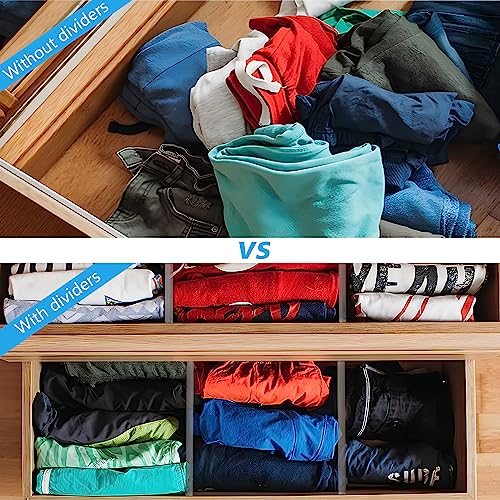 【Archiviazione efficiente】 Divisori per cassetti regolabili Dividi rapidamente lo spazio di archiviazione e tieni in ordine i tuoi cassetti. Risparmia tempo e spazio e dì addio al disordine.