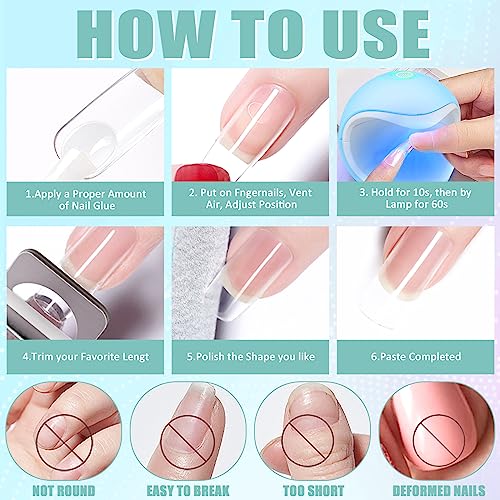 【Kit per nail art per principianti】Riceverai un kit per nail art da 600 pezzi, 1* mini lampada portatile per nail art, 2* colla per nail art, 1* tagliaunghie, 1* lima per unghie. Porta a casa questo set di extension per unghie e diventa il tuo nail designer.