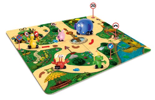 Famosa - In giro per la giungla, Set 5 veicoli in miniatura con suono