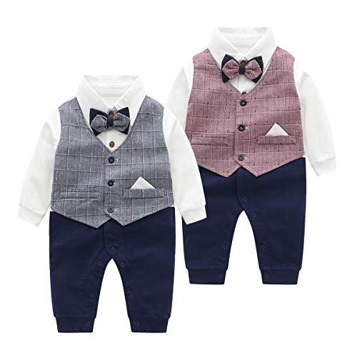 Famuka Bambini e Ragazzi Smoking Tuta di Cotone a Manica Lunga Gentleman Abiti e Giacche (Grigio, 59)