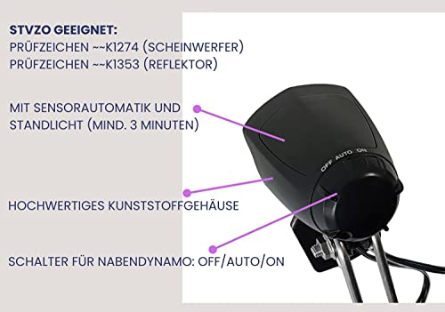Red Loon - Fanale a LED per bicicletta, 70 Lux con dinamo a mozzo StVZO