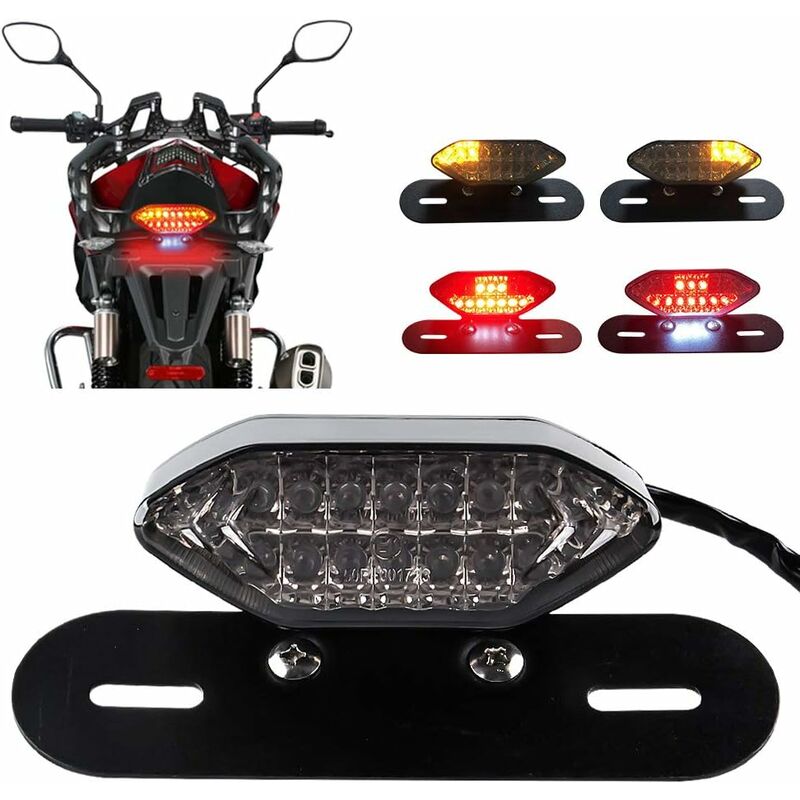Fanali posteriori due in uno: fanali posteriori integrati con indicatori di direzione e luci di stop, adatti alla maggior parte delle motociclette, nonché indicatori di direzione e abbaglianti. È conveniente e migliora la tua moto. Compatibilità: la luce è compatibile con la maggior parte dei modelli di moto, inclusi Harley-Davidson, Honda, Kawasaki, BMW, Yamaha, Suzuki, Ducati, Benelli, ecc. (Alcuni modelli potrebbero richiedere piccole modifiche). Altissima luminosità: la tensione di lavoro è DC 12V, la potenza è 5W, 16 LED ad alta luminosità, lente PC color fumo, la luce è più facile da brillare, penetrare e la luce è più ovvio. Il giallo è un segnale di svolta e il rosso è una luce di stop. Dimensioni della lampada: circa 4,3 * 1,6 * 2,0 pollici. Facile da installare: connessione a cinque fili, filo di terra nero;