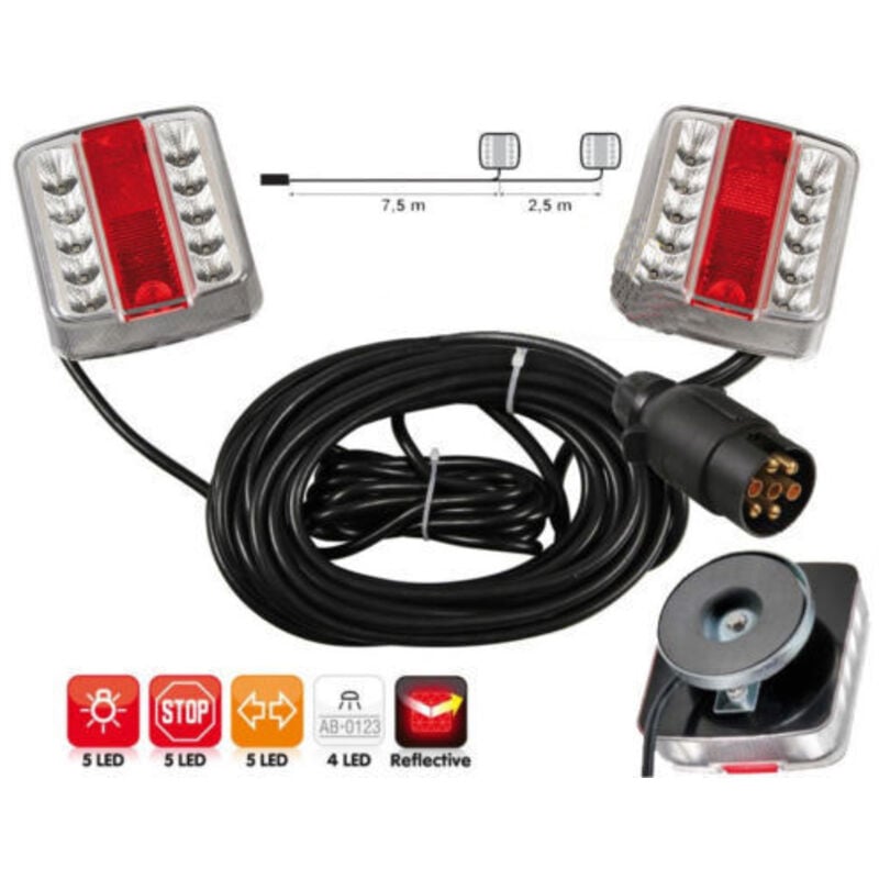FANALI POSTERIORE MAGNETICO A LED KIT COMPLETO DI FANALI E CAVO CON SPINA. Componenti del Kit: • Fanale posteriore DX con luce targa. • Fanale posteriore SX con luce targa. • Spina 7 poli montata. • luce posizione. • indicatore di direzione. • luce STOP. • Cavo 5 poli lunghezza mt. 7,5 + mt. 2,5 tra fanali. Cablaggio cavi premontati.