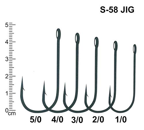 FANATIK ami da Pesca S-58 Misure 5/0, 4/0, 3/0, 2/0, 1/0 Ganci per Gomma Esche Offset Jig Hook for Soft Baits Lures Fanatic (Nero, 44mm - #3/0-6pcs)