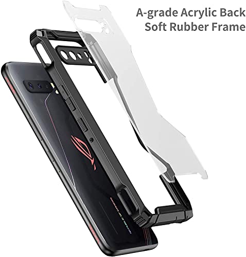 Fanbiya for ROG Phone 3 Custodia, ZS661KS Case, ROG 3 Strix Cover Compatibile con AeroCooler e Air Trigger Trasparente e Ultrasottile Custodia TPU con Vetro Temperato