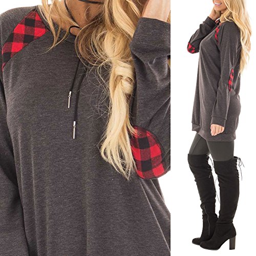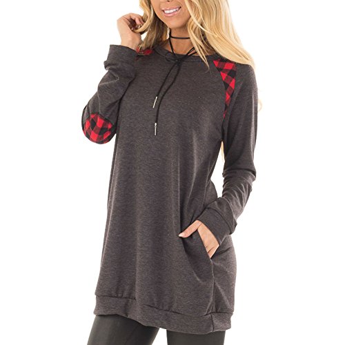 Fancathy Camicia Maniche Lunghe Pullover Oversize Tartan con Collo Rotondo Patchwork (Grigio, M)